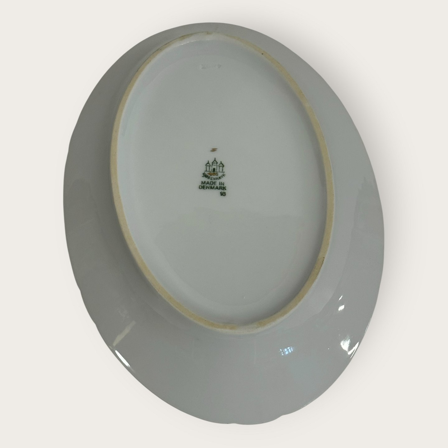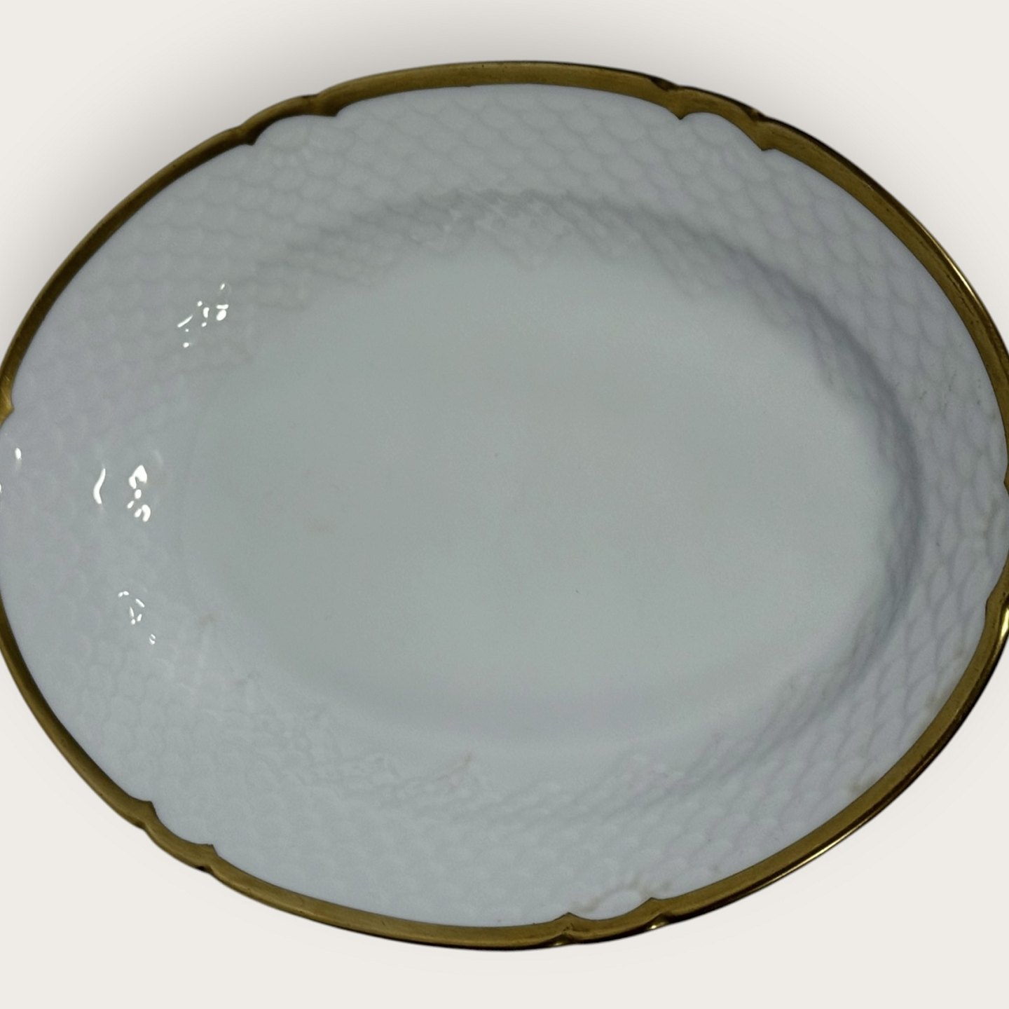 Bing & Grondahl, Aakjær, White porcelain with gold rim, Small dish # 18, 25x17.5cm, 1st grade *Good condition*