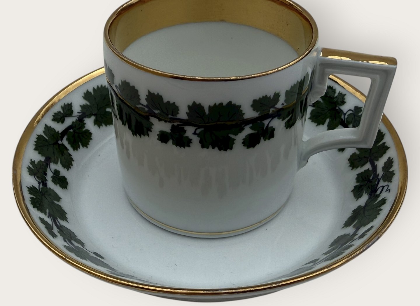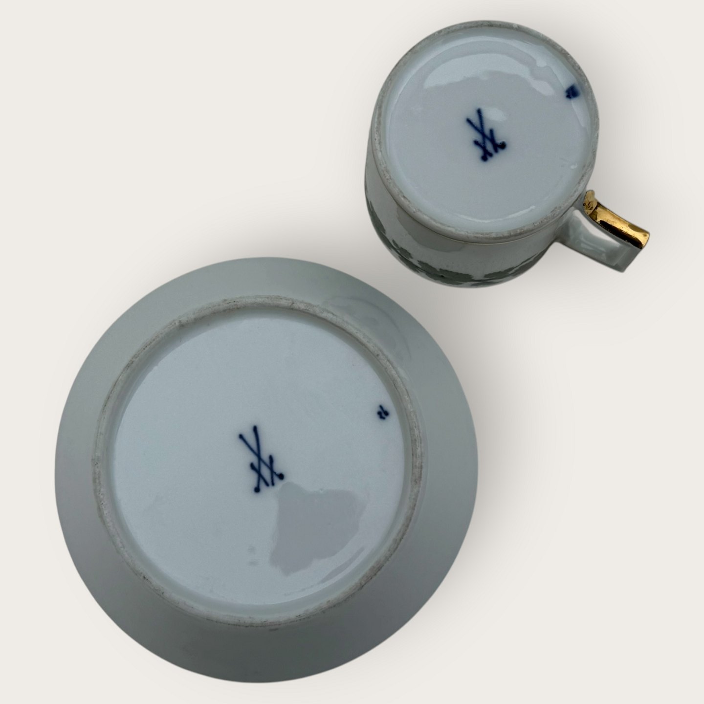 Meissen, kleine Kaffeetasse mit Weinlaub und Goldrand, Höhe 5 cm, Durchmesser 5 cm *sehr guter Zustand*