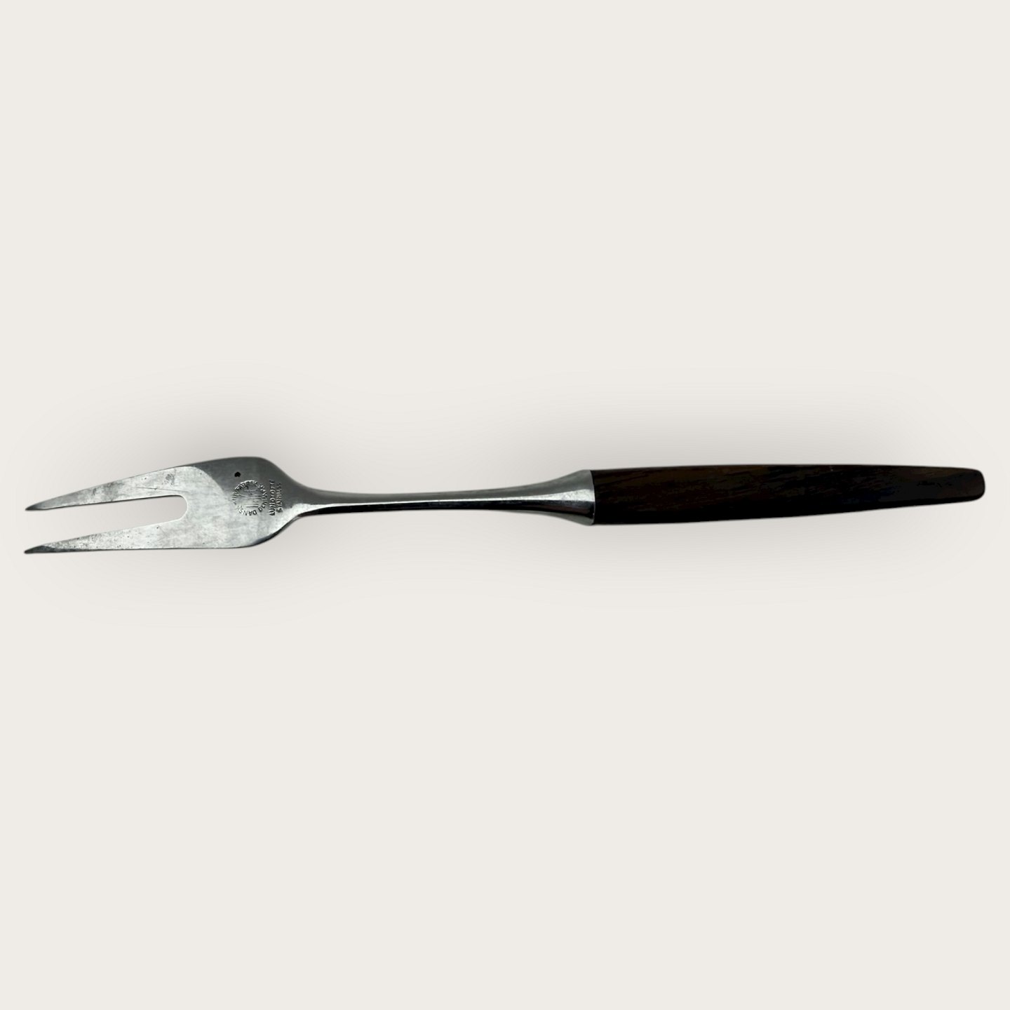 Lundtofte, pålægsgaffel i teaktræ og rustfrit stål fra 1960'erne, 14,5cm lang * pæn brugt stand*