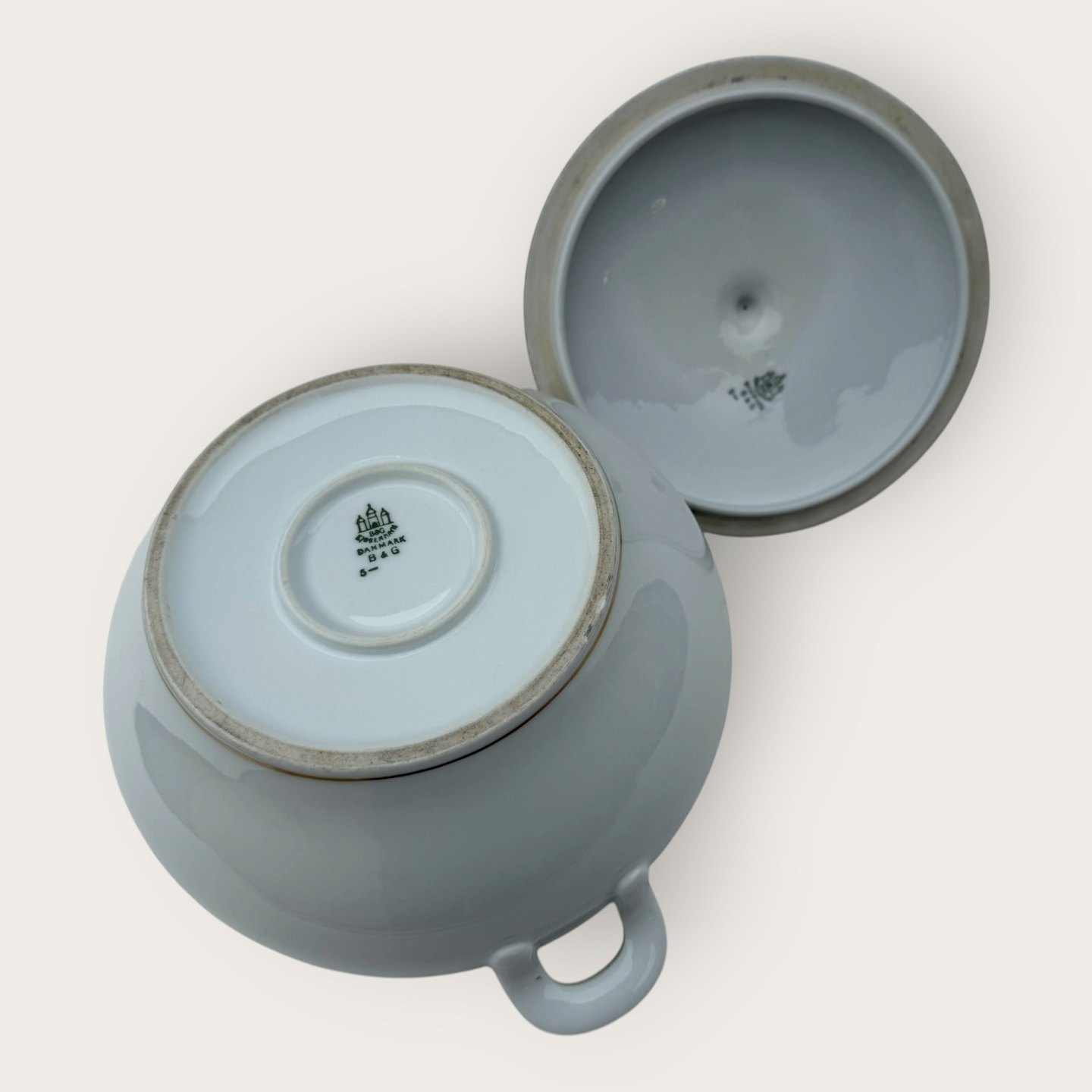 Bing & Grøndahl, Form 643 med bred turkis dekoration og guldkant, Terrin, #5, højde 17cm, bredde 26cm, 2. sortering, *pæn stand*
