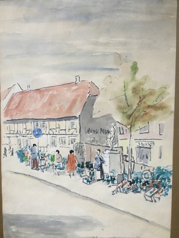 Sigurd Jacobsen (20 årh): Markedsdag i Odense 1959 Akvarel på papir Sign.: Sigurd Jacobsen 1959 57x40 (75x56)