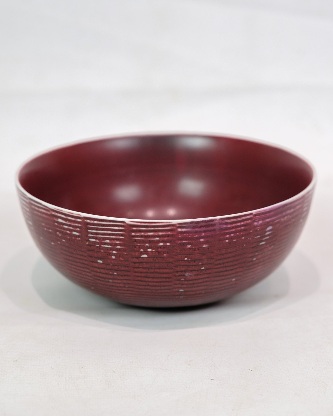 Ceramic bowl, model 20.717, with oxblood colored glaze, designed by Axel Salto for Royal Copenhagen. The bowl is a classic example of Salto's experimental approach to ceramics, where he used many different glazes to create deep and rich tones.