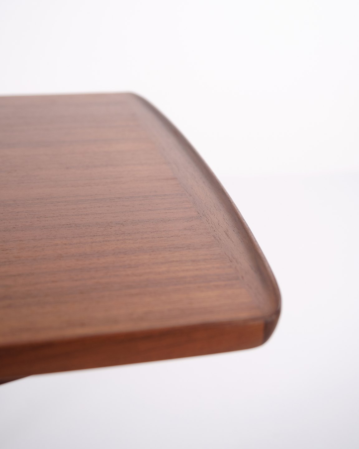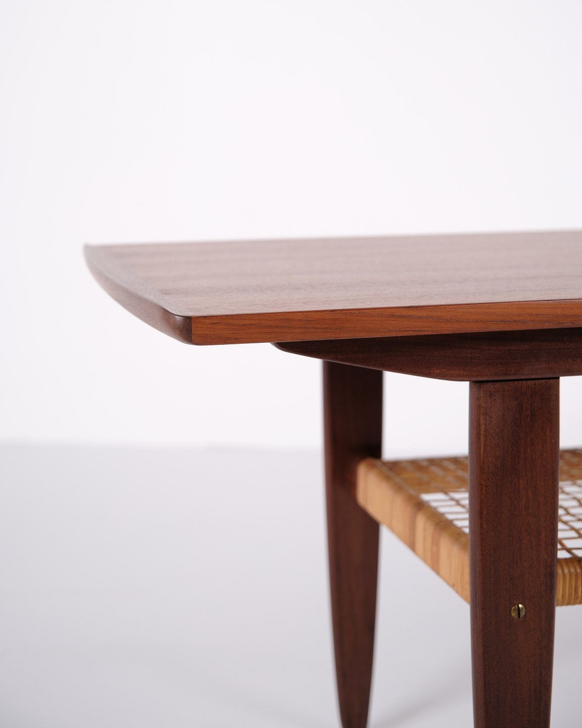 Coffee table made of teak with a shelf made of wicker from the 1960s. Classic Danish design.