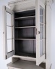 Stort svensk vitrineskab fra gustaviansk periode ca. 1790’erne. Glaslåger, hylder og skuffe.
