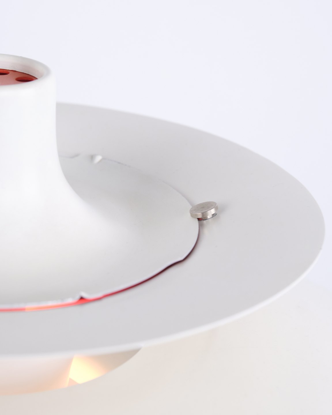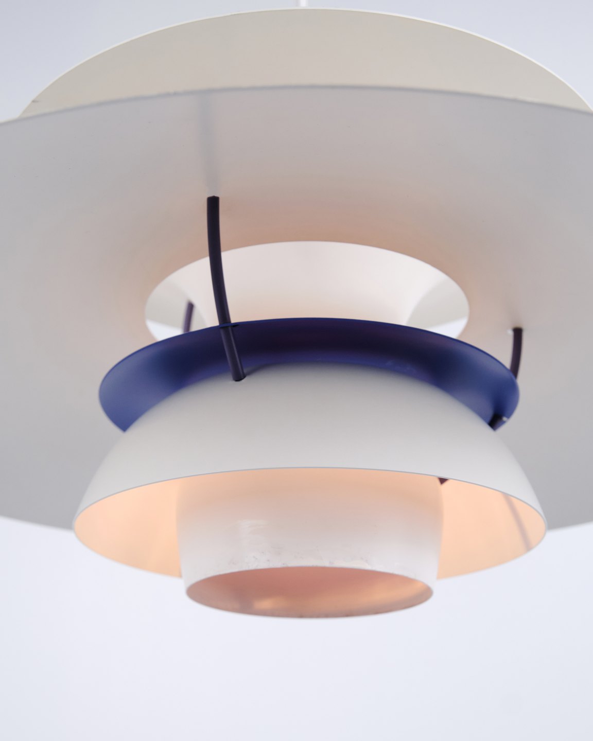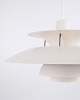 PH 5 pendel i hvidlakeret metal fra Louis Poulsen designet af Poul Henningsen. Klassisk dansk lampe med blændfrit og funktionelt lys.