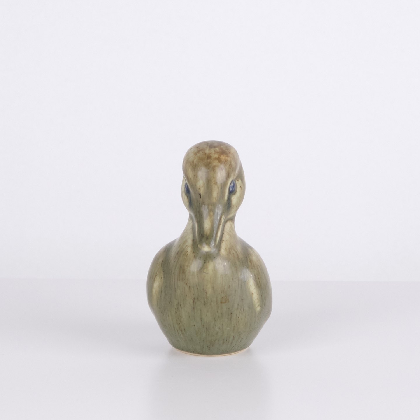Andefigur af Knud Basse udført i glaseret keramik. Figuren er fremstillet i Danmark i 1960’erne. Knud Basse er kendt for keramiske dyrefigurer med fugle- og naturmotiver produceret i perioden.