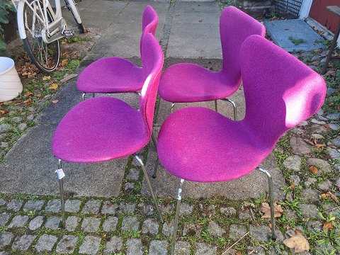 Arne Jacobsen sæt af 4 Syver stole model 3107. Udført hos Fritz Hansen.