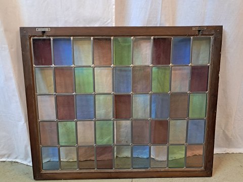 Blyindfattet rude med ramme i massivt fyrretræ, fra 1970erne.