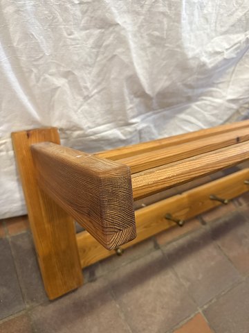Svensk design væghængt knagerække/hattehylde i massiv fyr og knager i messing.