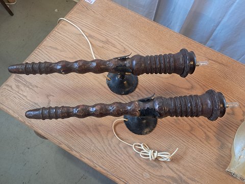 2 Væglamper i massivt egetræ og smedejern, fra 1930erne.