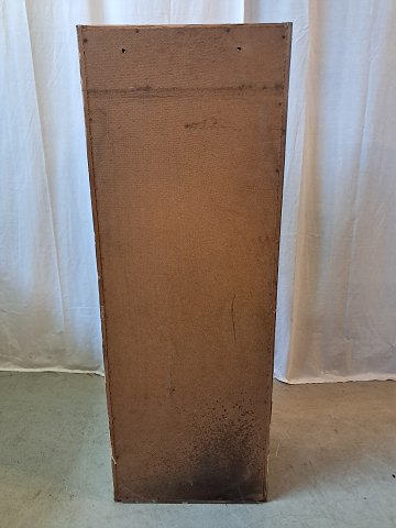 Gammelt malet køkkenskab med låge i fineret mahogni, fra 1950erne.