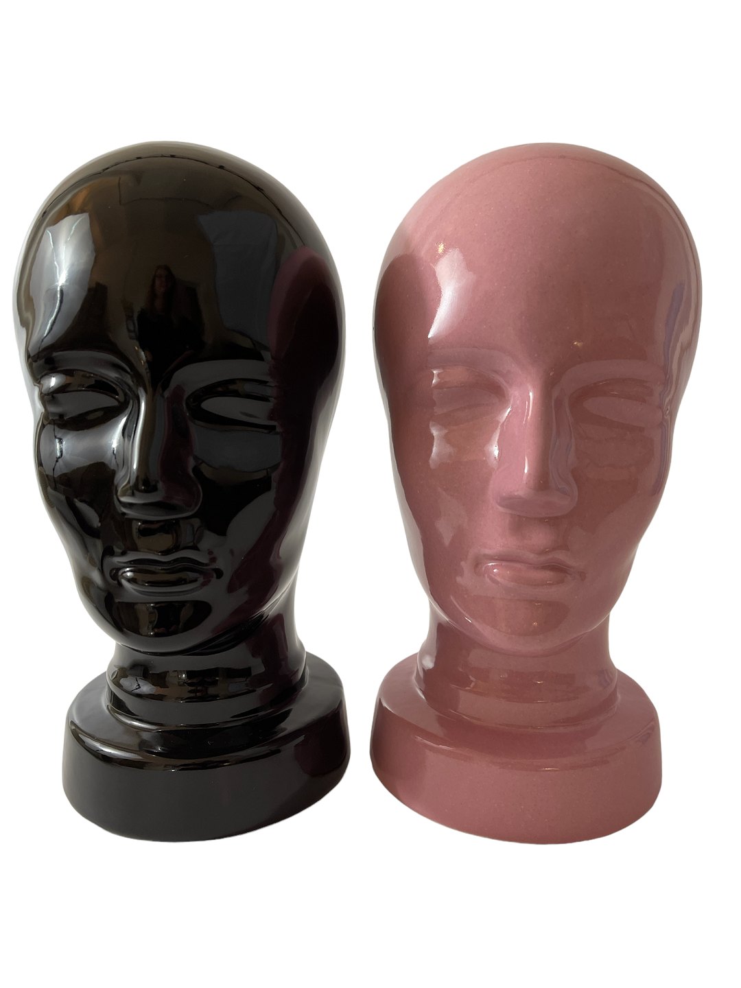 Ceramic head / hat stand or stand for eg headphones produced by German Scheurich ceramics. Retro. The ceramic head has shape number 701. We have a pink and a black head in stock. The price is per piece. Height: approx. 30 centimeters. THE PINK HEAD IS SOLD.