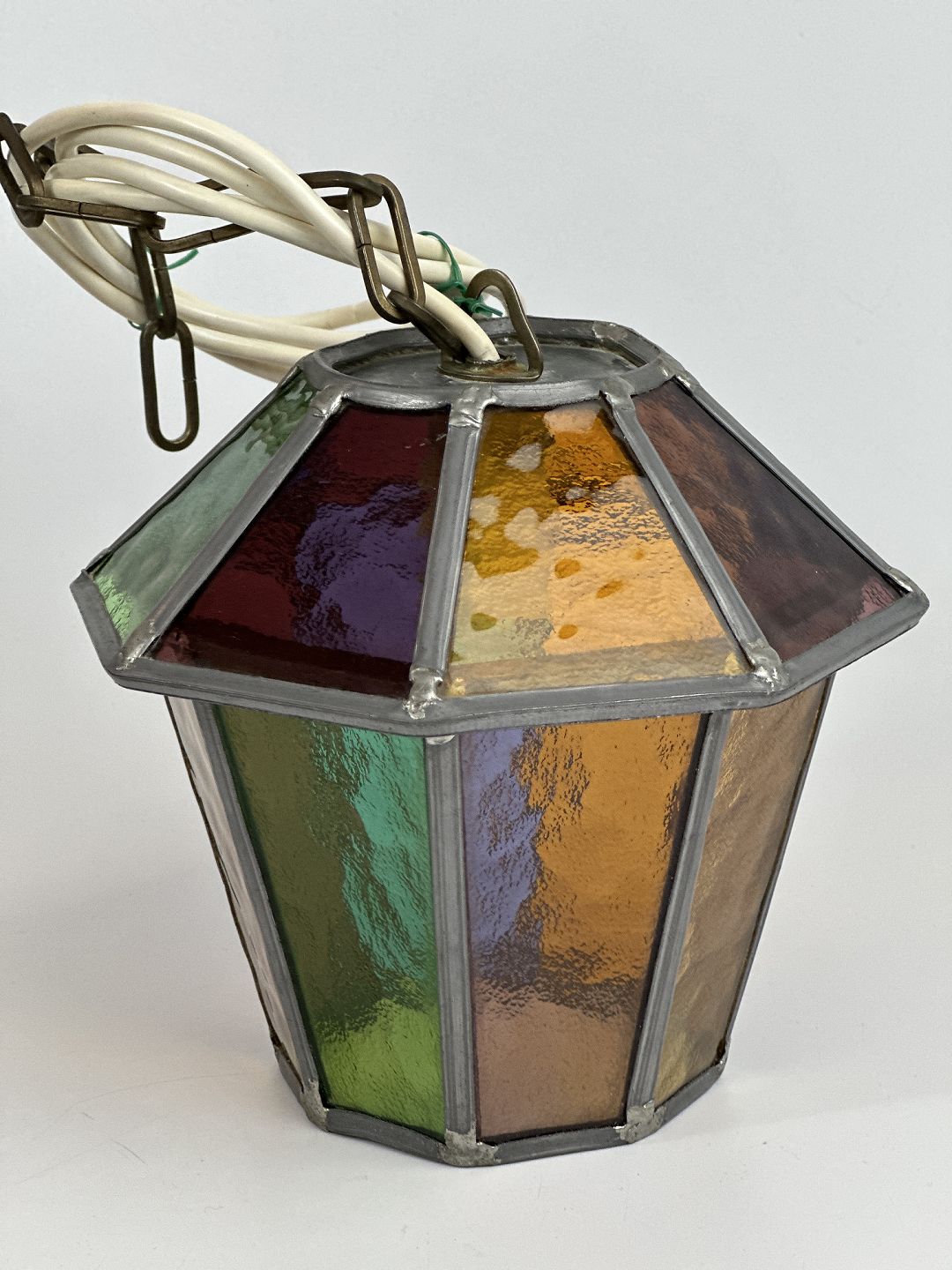 Lampe med blyindfattede glas i forskellige farver, vintage cirka 1960'erne.