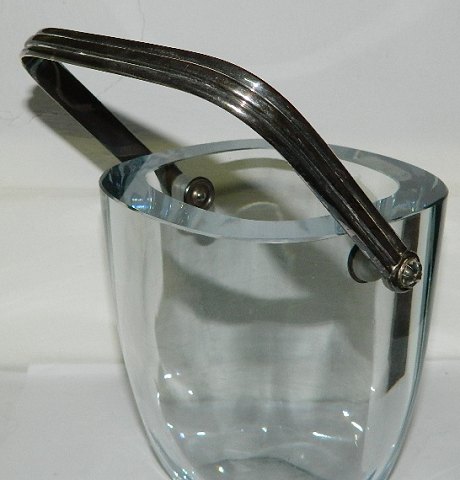 Isspand i kraftigt glas fra Strømbergshytten. Signeret på bunden. Håndtag i Sterling sølv fra Dragsted. Isspanden er 13 cm høj.