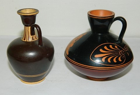 P. Ipsen vaser i terracotta med motiver i græsk stil.