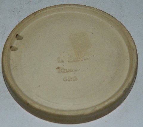 Miniature platte i teracotta fra Peter Ipsen, København, ca. 1880. Hygieia giver Æskulaps slange næring ("Sundhed"). Motiv efter Bertel Thorvaldsen relief modelleret i Rom 1808. Platten er i god stand. 6½ cm i diameter.