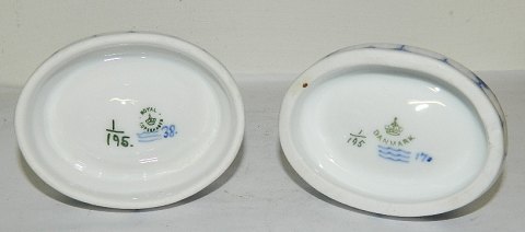 Musselmalet saltkar i porcelæn fra Royal Copenhagen. I perfekt stand. 1. sortering. Fabriksmærket på bunden. 3 cm høj 8 cm lang.