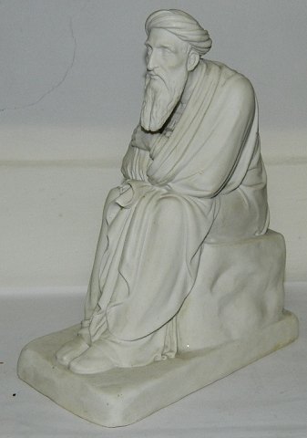 Figur i bisquit af siddende mand. Figuren tilhører Bertel Thorvaldsen´s (1770-1844) figurgruppe med Johannes Døberen. Denne ses over indgangspartiet ved Vor Frue Kirke. Stemplet med B&G på undersiden. I god stand uden skader eller reparationer. 20 cm høj.