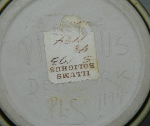 Krukke med låg fra Palshus. Grøn "hare-pels" glasur. Designet af grundlæggeren Peer Linnemann-Schmidt. I perfekt stand. 9½ cm høj incl. låg.