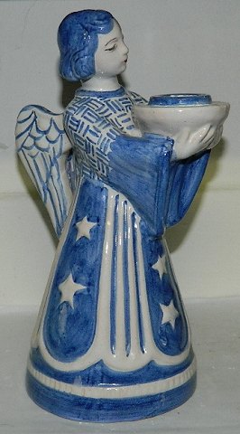 Stor figur af engel i keramik fra den bornholmske lervarerfabrik L. Hjorth i Rønne. Figuren fungerer tillige som lyseholder. I perfekt stand. Fabriksstemplet på bunden med bl.a. modelnummer 418. Figuren er 22½ cm høj. LIGNENDE KØBES
