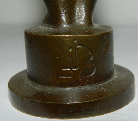 Figur i bronze af Jens Jacob Bregnø. Fremstillet ca. 1940. Putti med skål af muslingeskal. Signeret JJB BRDR. GRAGE BRONCESTØBERI. I perfekt stand. 11 cm høj