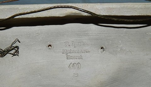 Efter Bertel Thorvaldsen motiv fra Rom 1823: Peter Ipsen, Kjøbenhavn, platte/relief i terracotta fra sidste halvdel af 19. århundrede. Relieffet forestiller Amor, der optages hos Anacreon ("Vinteren"). I god stand uden skader eller reprationer. Fabriksstemplet på bagsiden. Mål: 17½ cm x 29 cm