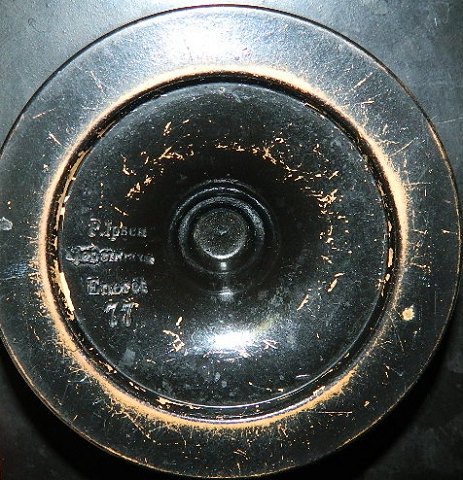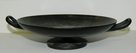 Kylix eller græsk skål fra Peter Ipsen, København. Produceret omkring 1880. Dekoreret i bunden med roser. I god stand uden skader eller reparationer. Dekorationen med brugsslid. Fabriksstemplet på bunden. 6 cm høj og 20 cm i diameter. Fra øre til øre 26 cm.