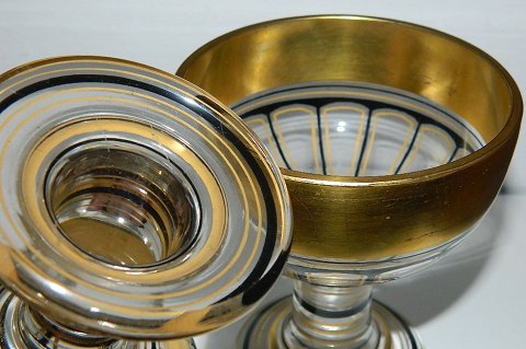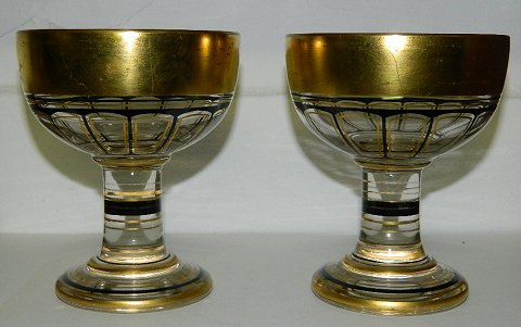 Par champagneglas med gulddekoration. Muligvist fra Böhmen ca. 1900. I god stand uden skader eller reparationer. 13 cm høj og 10½ cm i åbningsdiameter