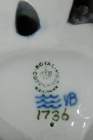 Figur i porcelæn af fløjtespillende Pan. I perfekt stand. 1. sortering. Modelnr. 1736. Fabriksmærket på bunden. 14 cm høj.