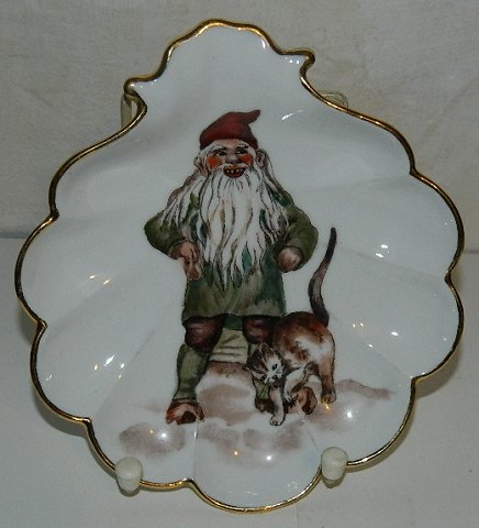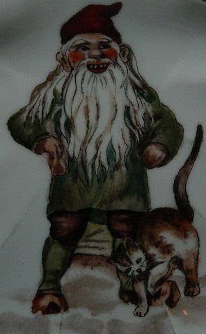 Fad i porcelæn fra Bing & Grøndahl. Fremstillet i slutningen af 19. århundrede. Bemalet i overglasur med nisse samt kat. Fremstår i perfekt stand. Fabriksmærket på bagsiden. 3 cm høj, 17½ cm langt og 16 cm bredt
