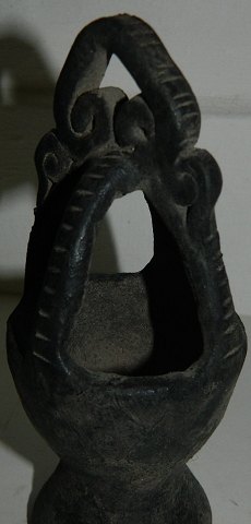 Blomsterholder eller muligvis lyseholder i jydepotte ler. I god stand. Formoder den er fra slutningen af 19. århundrede. I god stand uden skader. Dog brugsspor indenvendigt. 15. cm høj.