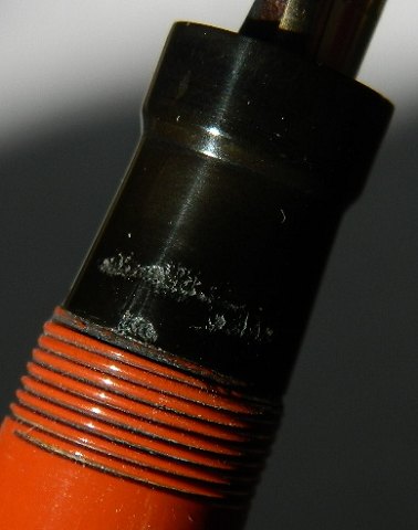 Stor koral rød Parker Duofold fyldepen fra omkring 1930. Push button fylder. Ny gummisæk skal indsættes før brug. Fyldepennens blindhætte har et mindre afslag. Den sorte sektion spidsen (nib´en) sidder på har en dyb ridse. Ellers ingen skader eller reparationer. Alle dele original til denne model. 13½ cm lang. (LIGNENDE GAMLE FYLDEPENNE KØBES)