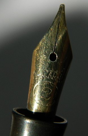 SIMPLO ORIGINAL MONT BLANC: Koral rød Montblanc no. 2 fyldepen fra omkring 1940. Push button fylder. Fremstår i god stand uden skader eller reparationer. Ny gummisæk skal indsættes før brug. Personligt navn indgraveret: GUDRUN LARSEN. Ingen skader eller reparationer. 12½ cm lang.