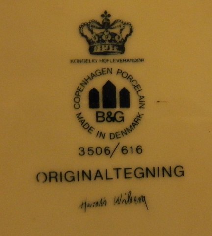 Fire B&G tallerkner med tegninger af Harald Wiberg
