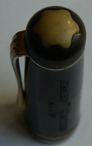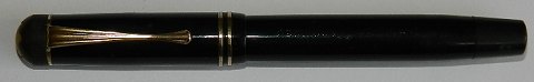 Sort Montblanc Masterpiece 30 fyldepen fra omkring 1930. Fremstår i perfekt stand med samtlige originale dele. Ny gummisæk skal indsættes før end den fungerer igen. Uden nævneværdigt brugsslid. Dybe indprint på både hætte og "krop". Smuk ben-hvid stjerne på toppen af hætten. Original Montblanc spids indgraveret 4810 (højden på bjerget Mont Blanc). 13½ cm lang. LIGNENDE KØBES