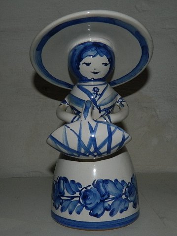Figur af ung kvinde med kurv. Fremstillet i keramik på Lars Syberg keramikfabrik. Designet af Alice Petersen. AP kaldte sine pige/kvindefigurer for dukker. Fremstår i perfekt stand. Fabriksmærket sammen med kunstnersignatur AP. 21 cm høj.