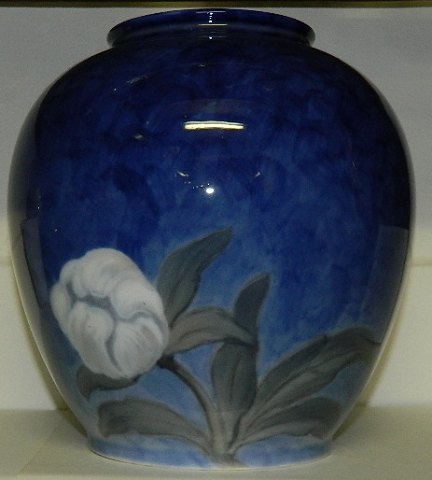 Stor krukke i porcelæn fra Royal Copenhagen. Dekoreret med blomster. Fremstillet i skønvirkeperioden mellem 1900-1923. Fremstår i god stand uden skader eller reparationer. 2. sortering. Små fejl i glasuren. Ingen skader eller reparationer. 21½ cm høj.
