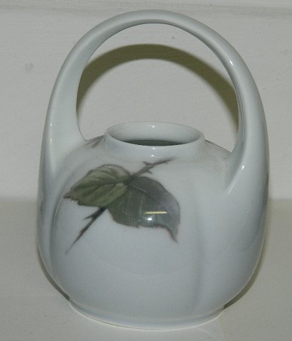 Krukke med hank i porcelæn. Dekoreret med blomster og bær. Låget mangler. Fremstillet hos Royal Copenhagen i perioden 1900-1923. Fremstår i god stand uden skader eller reparationer. Fabriksmærket på bunden. 12 cm høj.