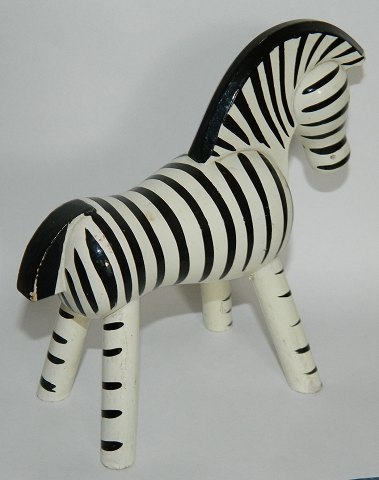Kay Bojesen zebra i træ. Fremstår i god stand med almindeligt brugsslid. Lidt afskalning på det forreste af manken. Ikke mærket. 14 cm høj. LIGNENDE KØBES