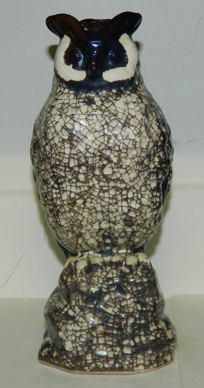 Figur af ugle i keramik fra den bornholmske lervarefabrik Michael Andersen & Søn (MA&S). Dækket af persianglasur. Fremstår i perfekt stand. Fabriksmærket på bunden. 22½ cm høj.