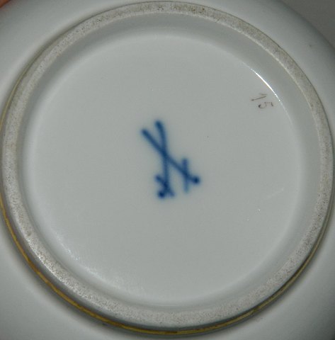 Lågskål i porcelæn fra Meissen 20. århundrede. Fremstår i god stand uden skader eller reparationer. Blomsterdekoration på underdel og låg. Lågknop i form af rose. Fabriksmærket på bunden. 12 cm høj.