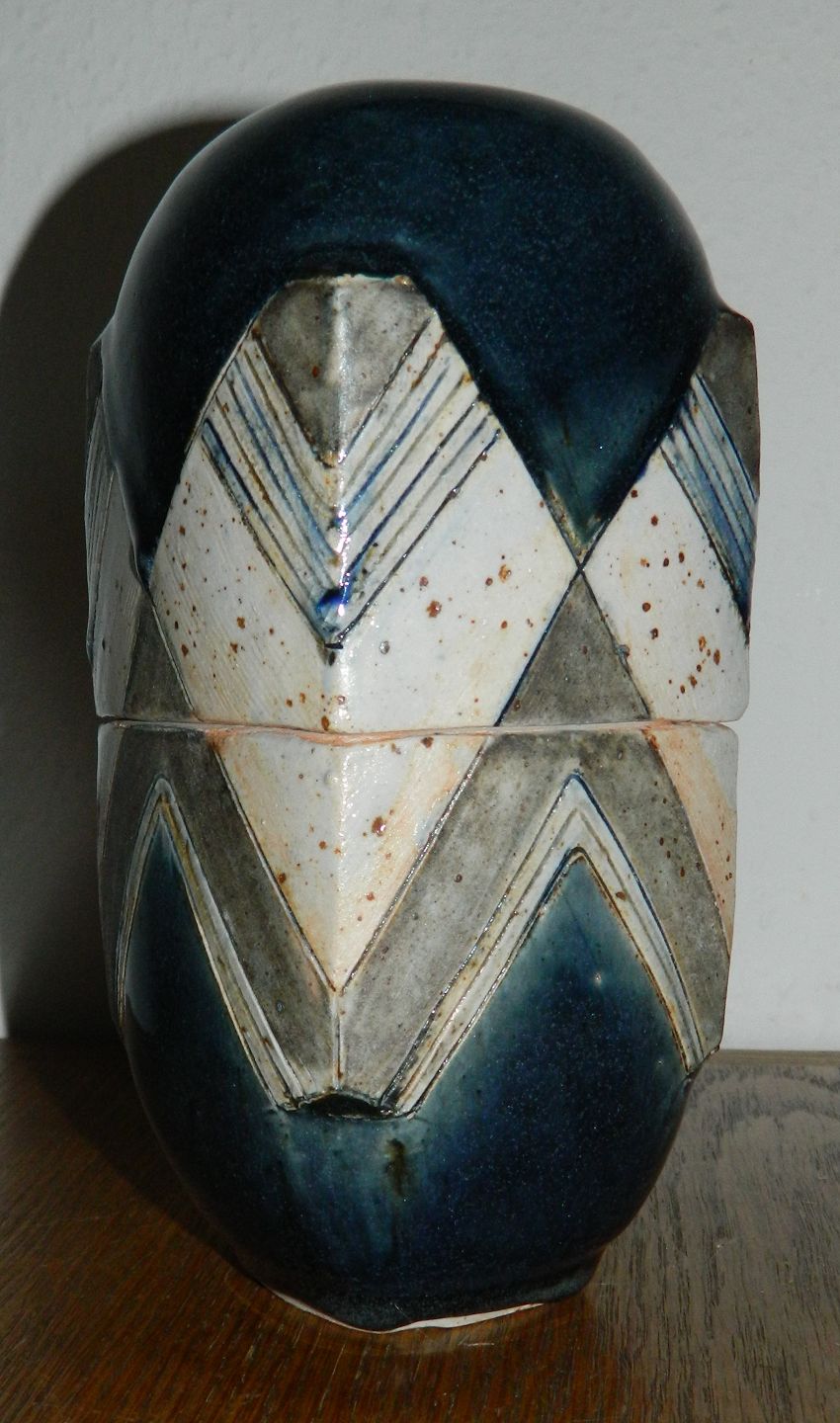 Høj lågkrukke i keramik af Julie Høm. Fremstår i perfekt stand. Signeret af kunstneren på bunden. 20½ cm høj LIGNENDE KØBES