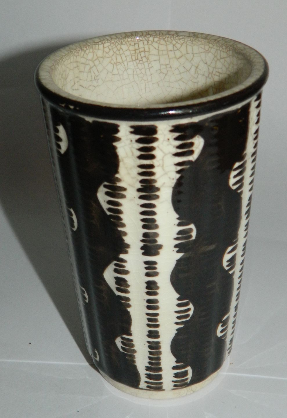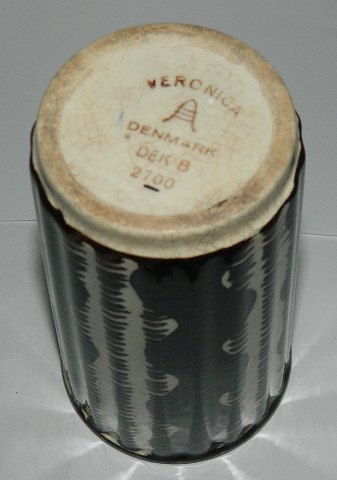 "Veronica" Blomstervase i fajance fra Aluminia. Fremstår i god stand uden skader eller reparationer. Stærkt krakkeleret. Fabriksmærket på bunden. 13 cm høj.