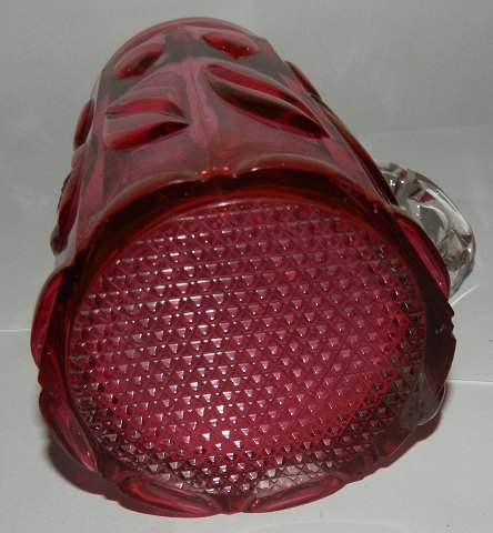 Bøhmisk glaskrus i rødt glas fra slutningen af 19. århundrede. Fremstår i god stand uden skader eller reparationer. 15 cm høj.
