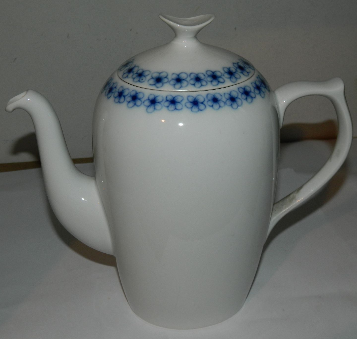 Kaffekande i porcelæn fra B&G med dekoration af blå blomster. Fremstår i perfekt stand. 1. sortering. Fabriksmærket på bunden. 21 cm høj