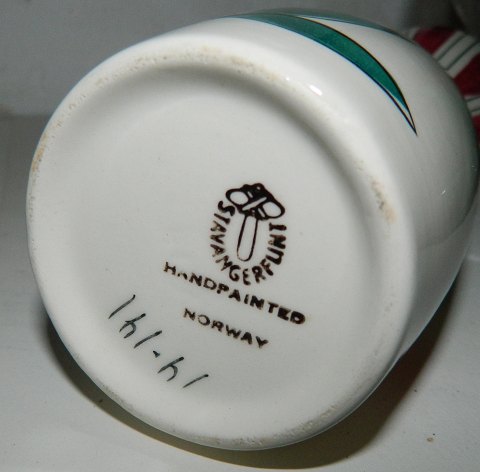 Hvid vase med farverig dekoration bl.a. blå fugl fra Stavangerflint i Norge. Fremstillet i fajance. Fremstår i perfekt stand. Dekoration af Inger Waage. Fabriksmærket på bunden. 19½ cm høj.