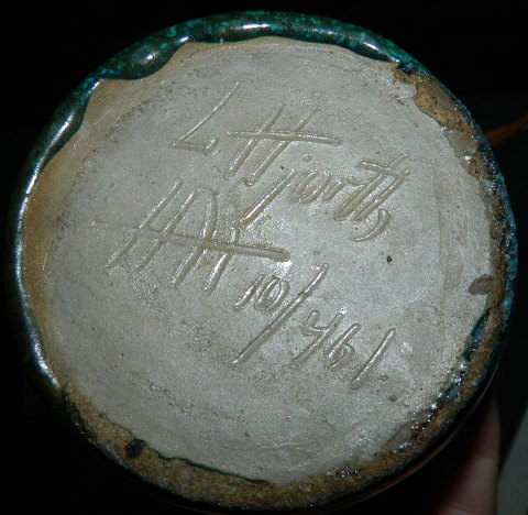 Lampefod i keramik fra Lauritz Hjorth, Rønne, Bornholm. Udført af Hans Adolf Hjorth (1878-1966). Er ikke udboret hvorfor den kan laves om til vase !