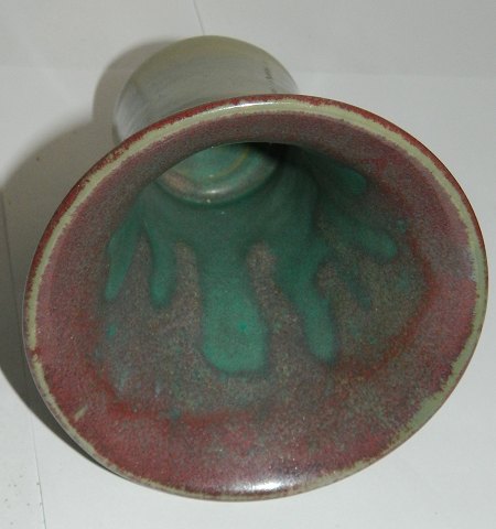 Vase i keramik fra Lauritz Hjorth, Bornholm fra skønvirkeperioden. Grå med rødlig løbeglasur. Udført af Hans Adolf Hjorth (1878-1966). Fremstår i perfekt stand. Fabriksnavn samt kunstnersignatur på bunden. Emne når 100 i 1909. Vasen er 11 cm høj.