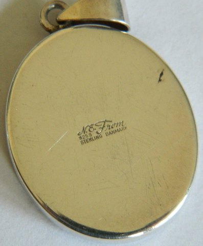 Sterling sølv vedhæng med sort sten af N. E. From. Stemplet på bagsiden Mål: 3½ cm x 2½ cm.