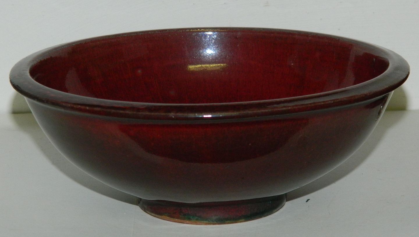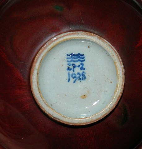Stentøjsskål dækket af rød glasur fra Royal Copenhagen. Fremstillet i 1928. Fremstår i god stand uden skader eller reparationer. Fabriksmærket samt produktionsår på bunden. 6 cm høj og åbningsdiameter på 16 cm.